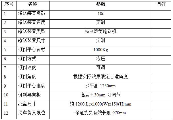 1 .技術(shù)要求及參數(shù) 2 .設(shè)備組成 占地約為5200mm(L)3500mm(W)2400mm(H),主要由輸送設(shè)備、傾倒裝置、防護(hù)裝置、電控系統(tǒng)等組成。如圖1所示,輸送裝置上設(shè)置有3個工位,中間工位為倒